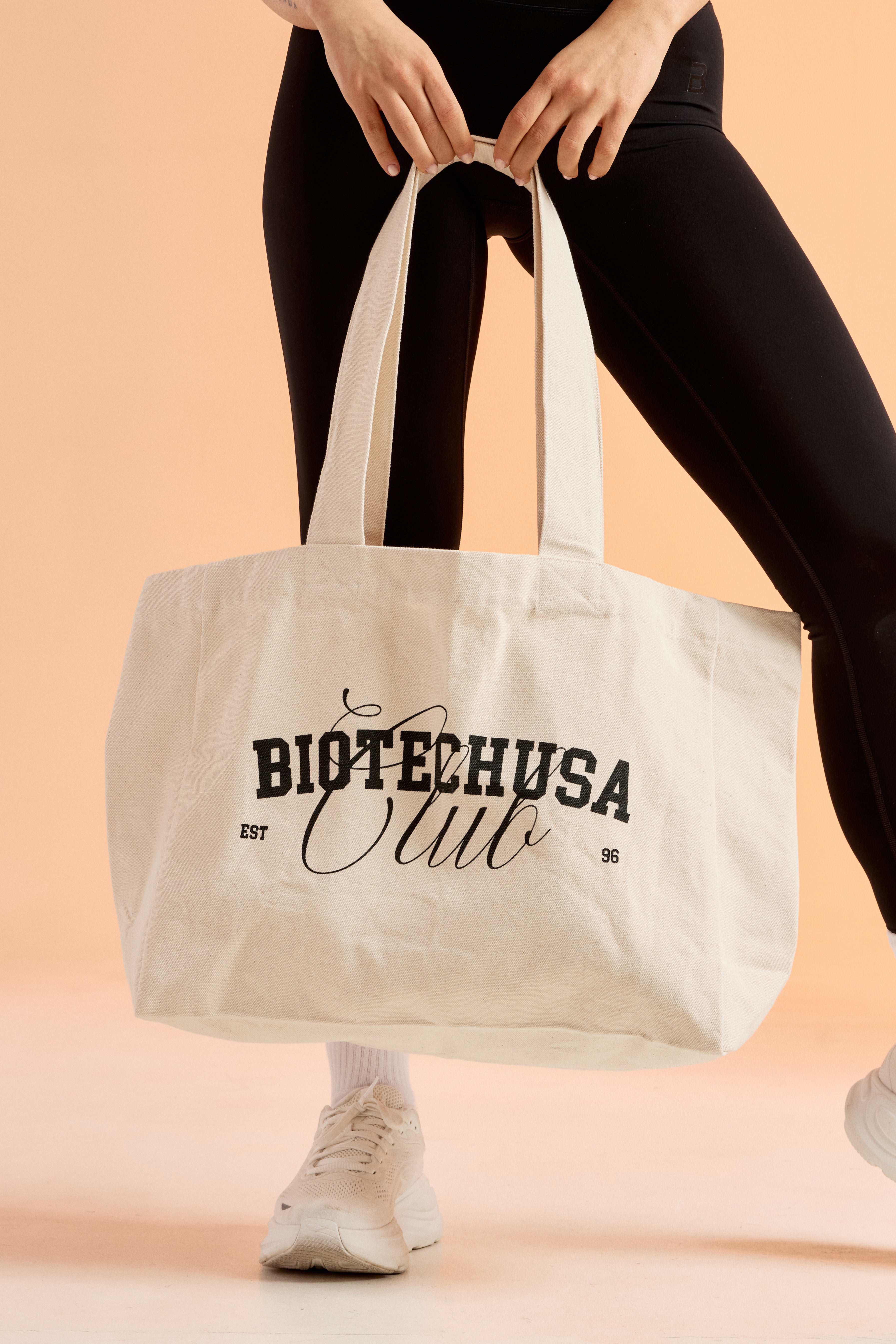 Veliki unutarnji prostor s jednim pretincem prima sve što ti može zatrebati tijekom dana — bilo da se radi o opremi za trening, kupnji ili stvarima za cjelodnevni plan. Čvrste ručke od istog materijala udobne su za nošenje i na ramenu i u ruci.